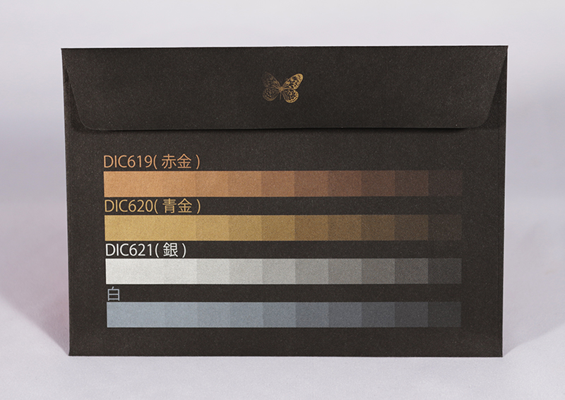 金や銀の箔を黒い封筒に貼り付けます。高級感が出る仕様の中ではピカイチです。