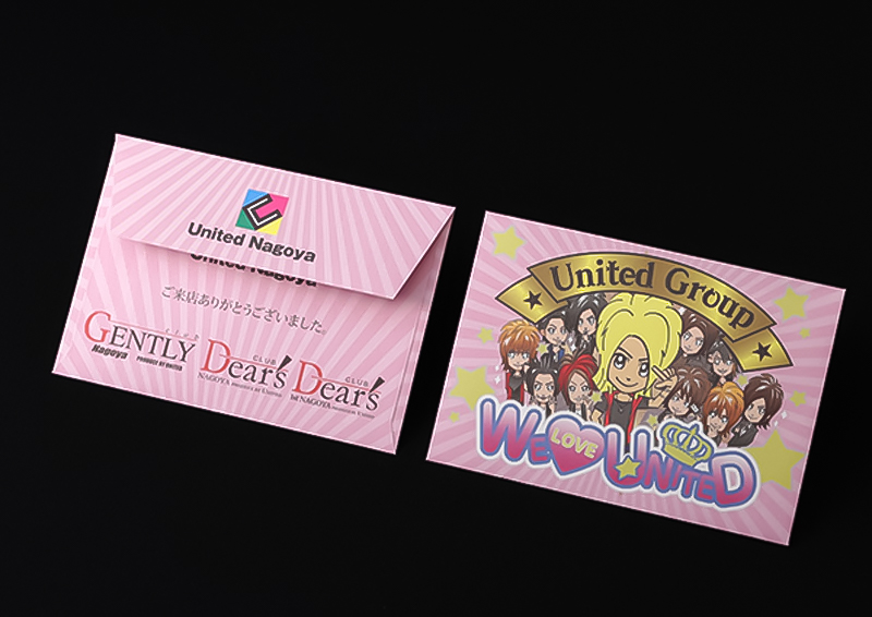 封筒色は黒または白色。形状はフタが三角形の「ダイヤモンド貼」、フタが台形の「カマス貼」です。