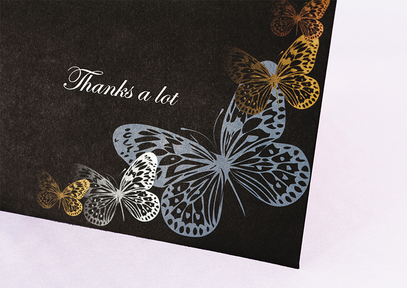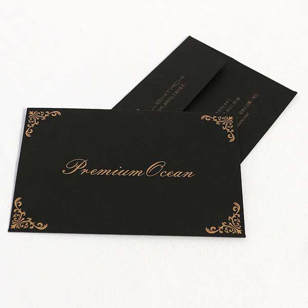 高級感をアピールするなら、黒い紙に金・銀・白印刷する方法がお手軽です。スタイリッシュな仕上りになります。