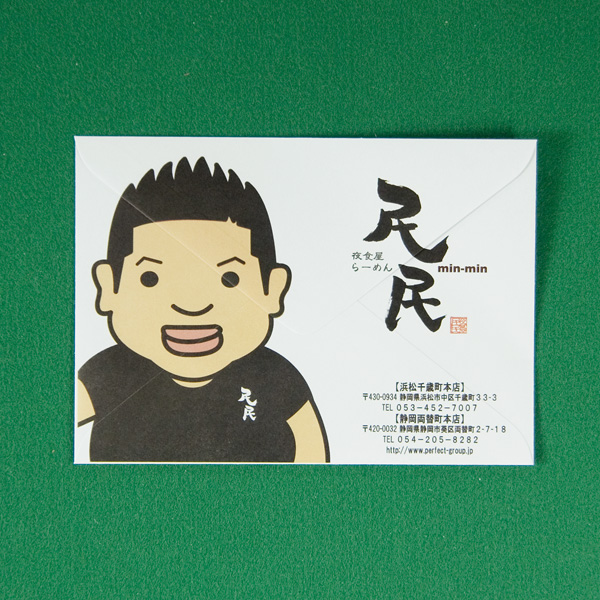 静岡両替町本店オープンの案内状を入れる封筒を頼みました。デザインが封筒の切れ目に掛かっている為、少し不安でしたが、デザインのズレも無く、大変満足しております。
